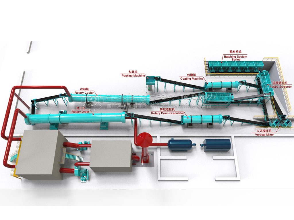 The matured material needs further processing to become a qualified finished product. First, it is screened using bio-organic fertilizer equipment such as a rotary screen to remove incompletely fermented large pieces of material, resulting in fine and uniform material. For products requiring granulation, the qualified material is sent to a fertilizer granulator machine, where, with the help of a binder, it forms granules of uniform size. Granulated organic fertilizer is easier to store and apply, making it more popular in the market. After granulation, the process moves to the drying and cooling stage. Excess moisture is removed using a dryer, followed by cooling to prevent the granules from clumping and deteriorating.
