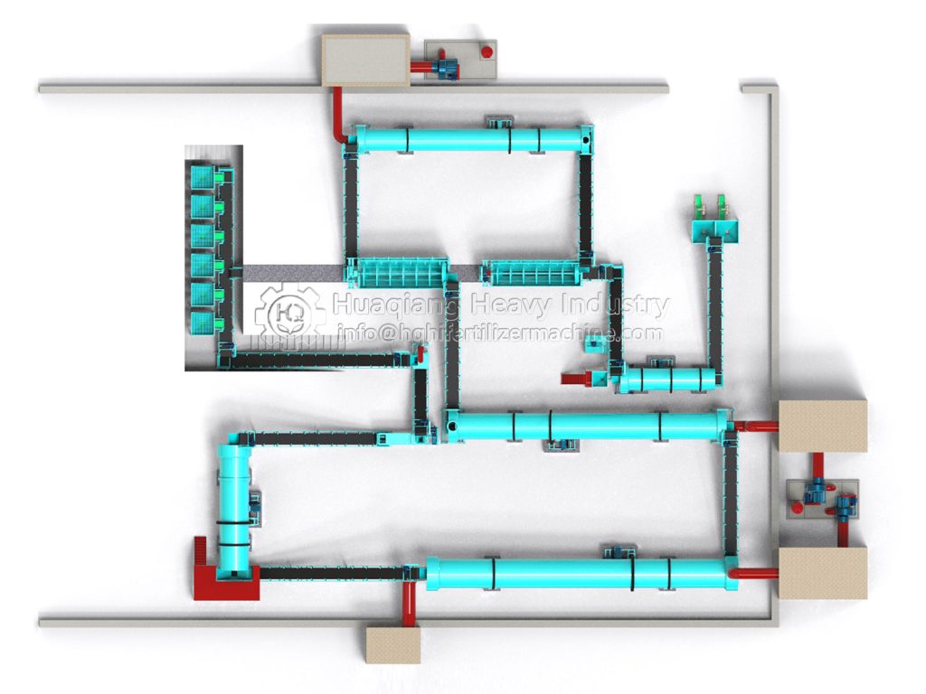 After the ingredients are mixed, they directly enter the granulation stage, a crucial step that determines the product’s form. Currently, the mainstream methods employ wet granulation processes such as rotary drum granulation and disc granulation. In the granulator, the material undergoes physical extrusion or agglomeration, combining with an appropriate amount of moisture to form uniform particles. Some high-end production lines utilize tubular reactor technology, atomizing and spraying high-temperature slurry onto the granulator bed for coating and granulation, which can improve water-soluble phosphorus utilization and reduce energy consumption.